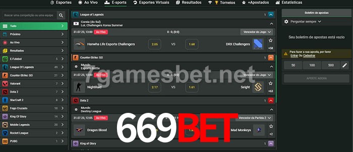 O 669bet oferece uma grande seleção de opções de apostas em e-sports com probabilidades competitivas